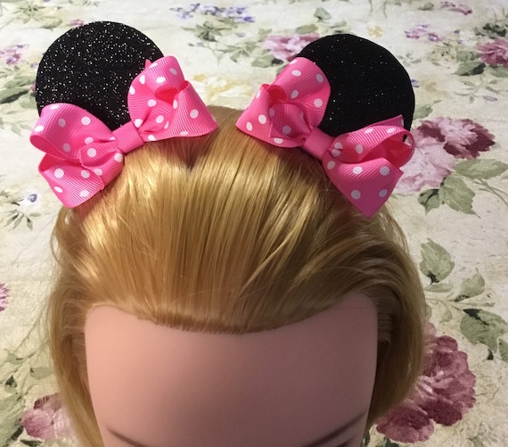 Minnie Mouse Hair Clip Minnie Birthday Hair Bows Pigtail Pom Etsy
